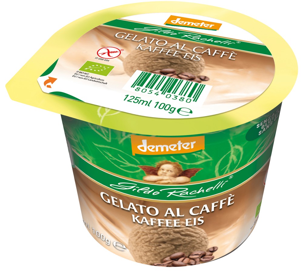Zloženie: 56% plnotučné mlieko, 18%smotana, 11%surový trstinový cukor, maniokový sirup ,maniokový maltodextrin, 3% kávový extrakt, stabilizátor karubin, . Biologické a biodynamické prísady. Môže obsahovať lieskové orechy a pistácie.