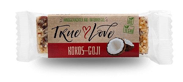 Tyčinka „Pravá láska“ nám pripomína dovolenku. Je to kvôli chuti kokosu, goji bobúľ a brusníc v kombinácii s mandľami a quinoou. Príjemná na zahryznutie v čase oddychu alebo medzi hlavnými jedlami.